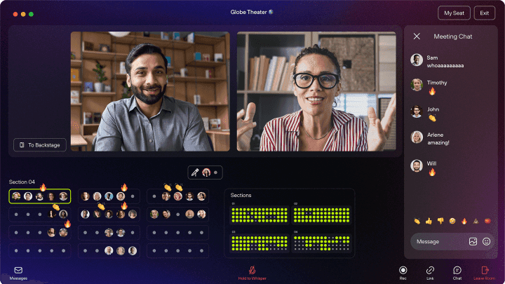 Fun Elements: Interactive features like go-karts and gongs enhance social engagement, and users can share links and references during interactions, but these do not extend to deep productivity tools.