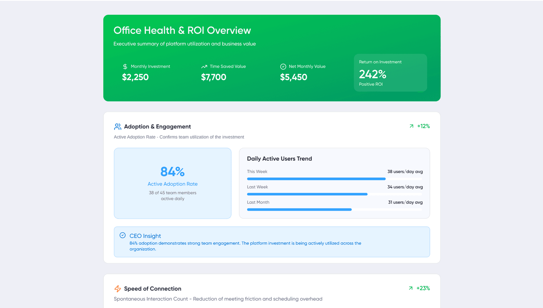 Regularly reviewing these metrics allows organizations to optimize their use of virtual office platforms, adapt to changing team needs, and demonstrate a clear return on investment for their remote and hybrid work initiatives.
