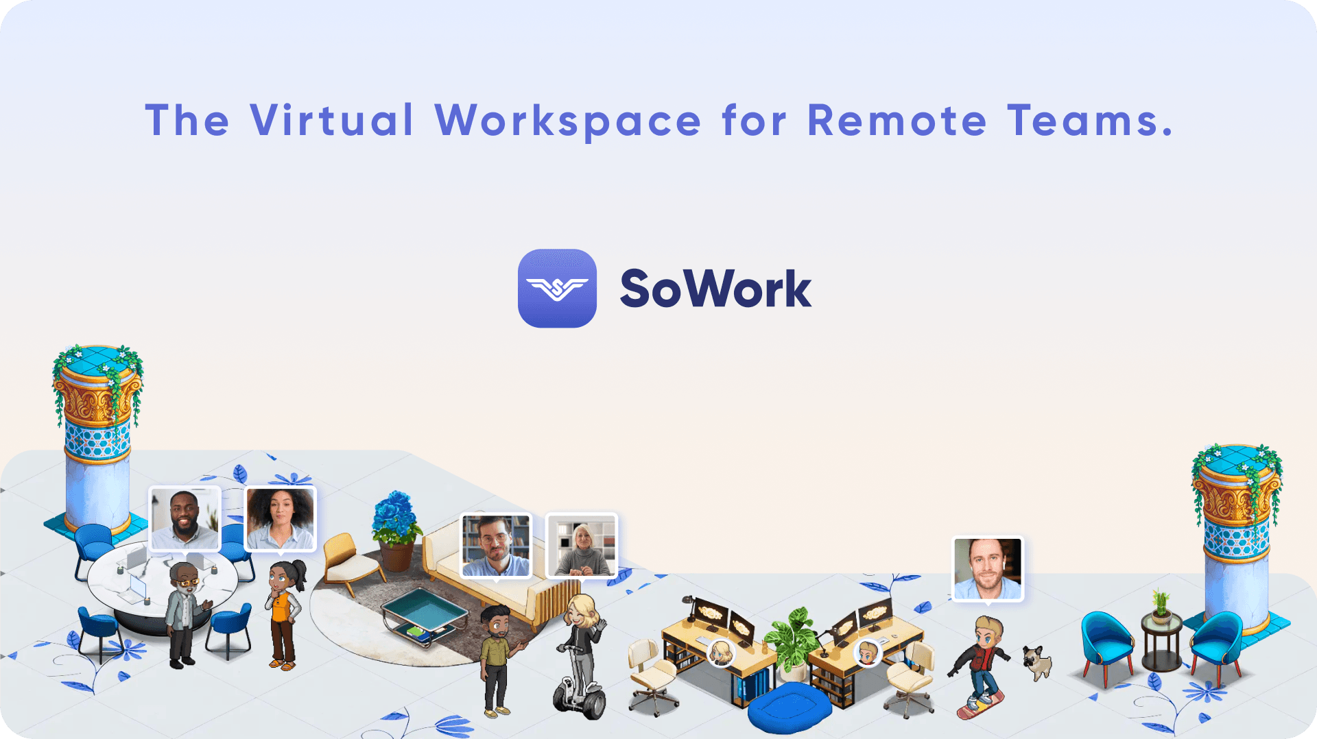 Trial SoWork virtual office setup to establish unified team presence and meeting hubs