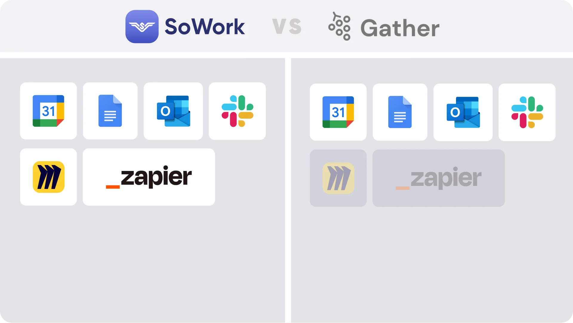 Your virtual office needs to fit into your existing workflows. And both Gather Town and SoWork have integrations to do that.