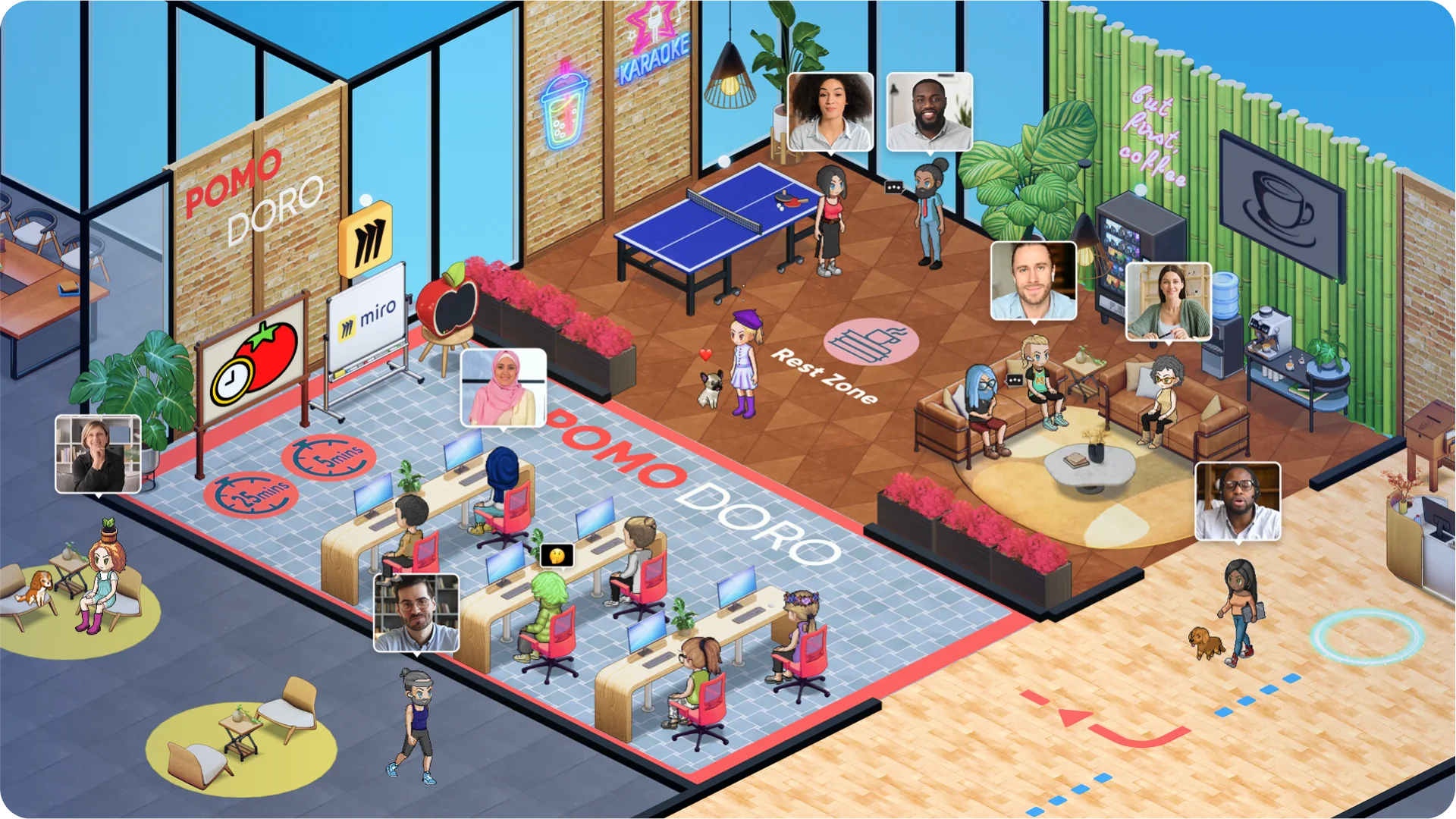 Meeting zones with thoughtful coworking functionality, like pomodoro zones.