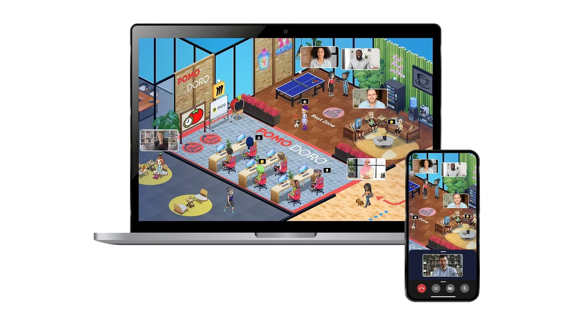 SoWork was originally created for remote work. Socialization is a core part of the SoWork virtual office experience, but it’s woven into the experience from a work-first perspective. Think: deep work zones where teammates can work beside each other. Interview zones so existing employees can wave ‘hello’ to a new hire. Collaborative work zones with pomodoro timers where teammates can crush work together and play between sprints. Analytics that encourage team connections to increase team performance.