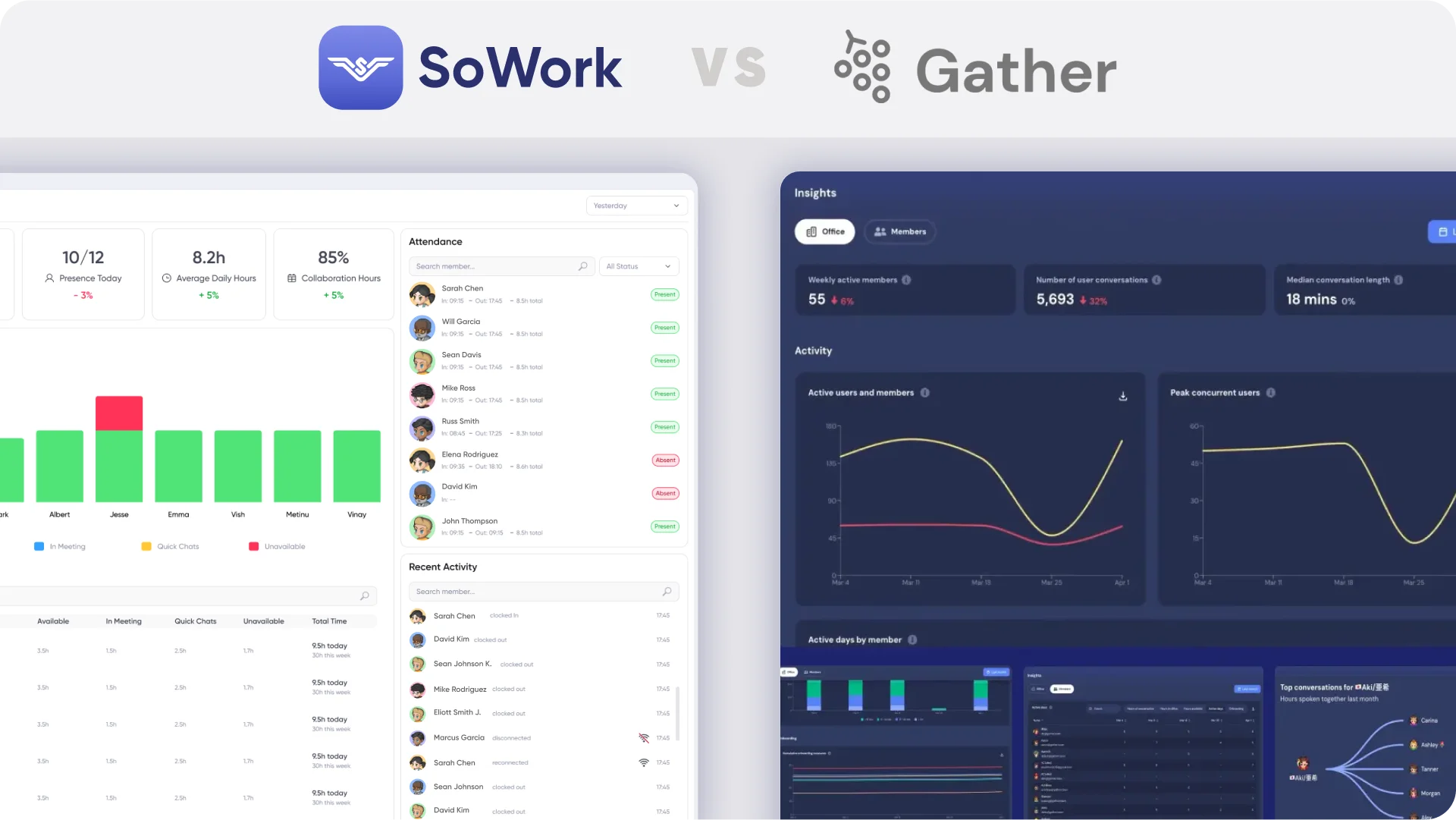 Gather Town is like a fun, social hangout spot with a touch of work.SoWork, on the other hand, is a remote work powerhouse with team bonding woven into the work days.