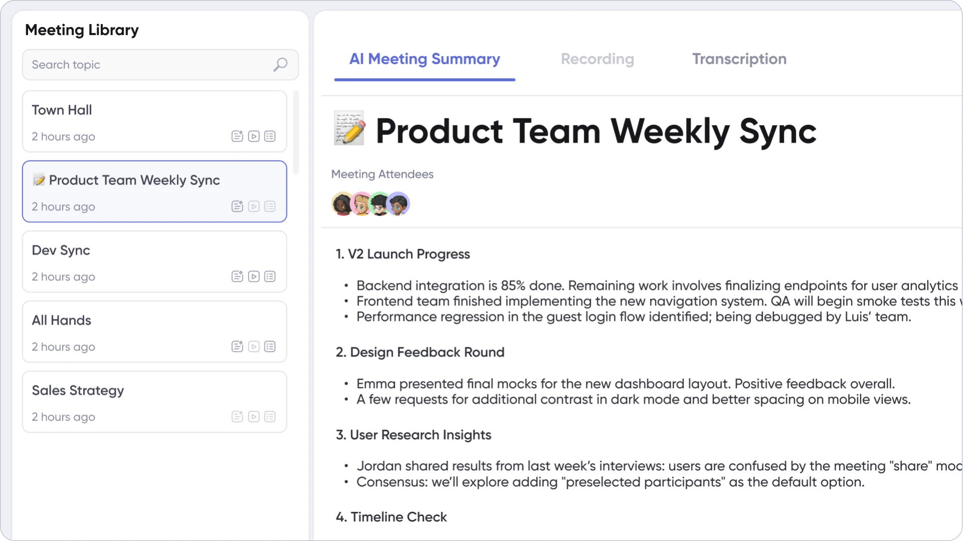 AI meeting summaries, so teammates can easily catch up on-the-go