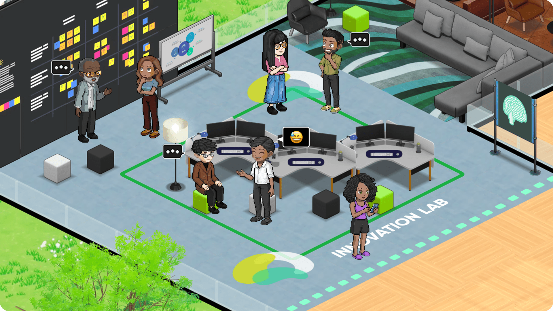 Persistent virtual office with presence indicators so everyone could see who was online