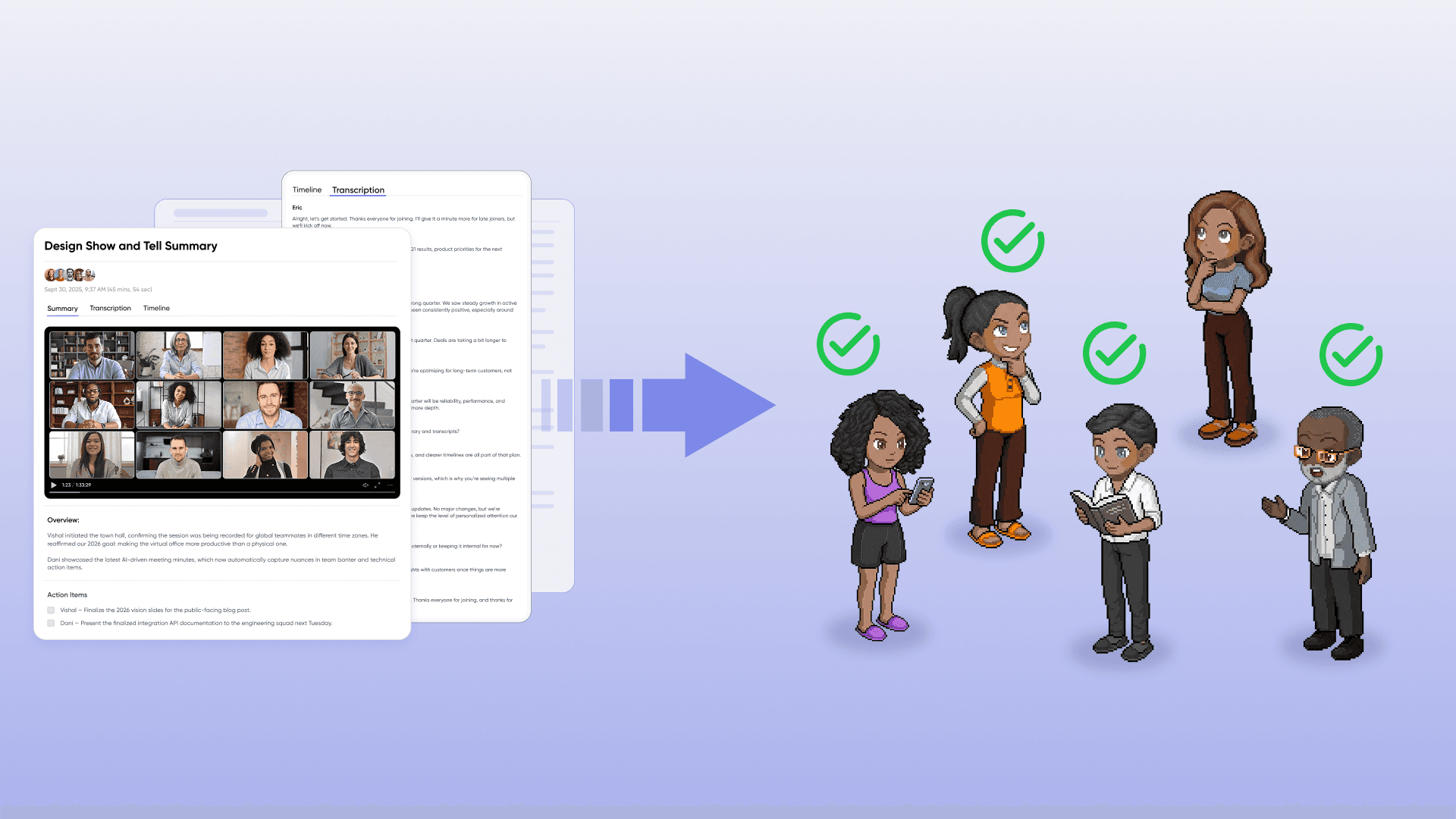 Get summaries, transcripts, and action items
