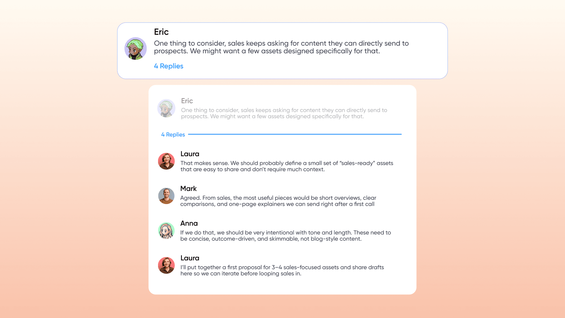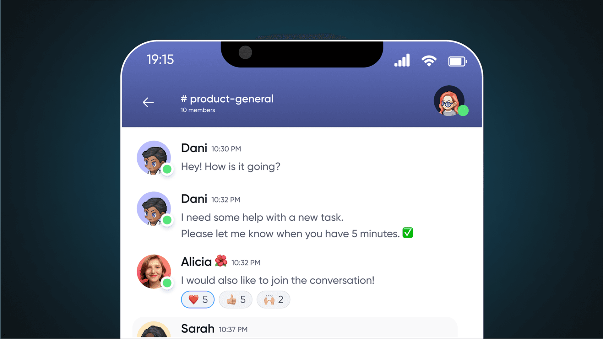 Reply directly to messages using threads so detailed discussions don’t clutter the main channel. Follow conversations without losing the bigger picture.