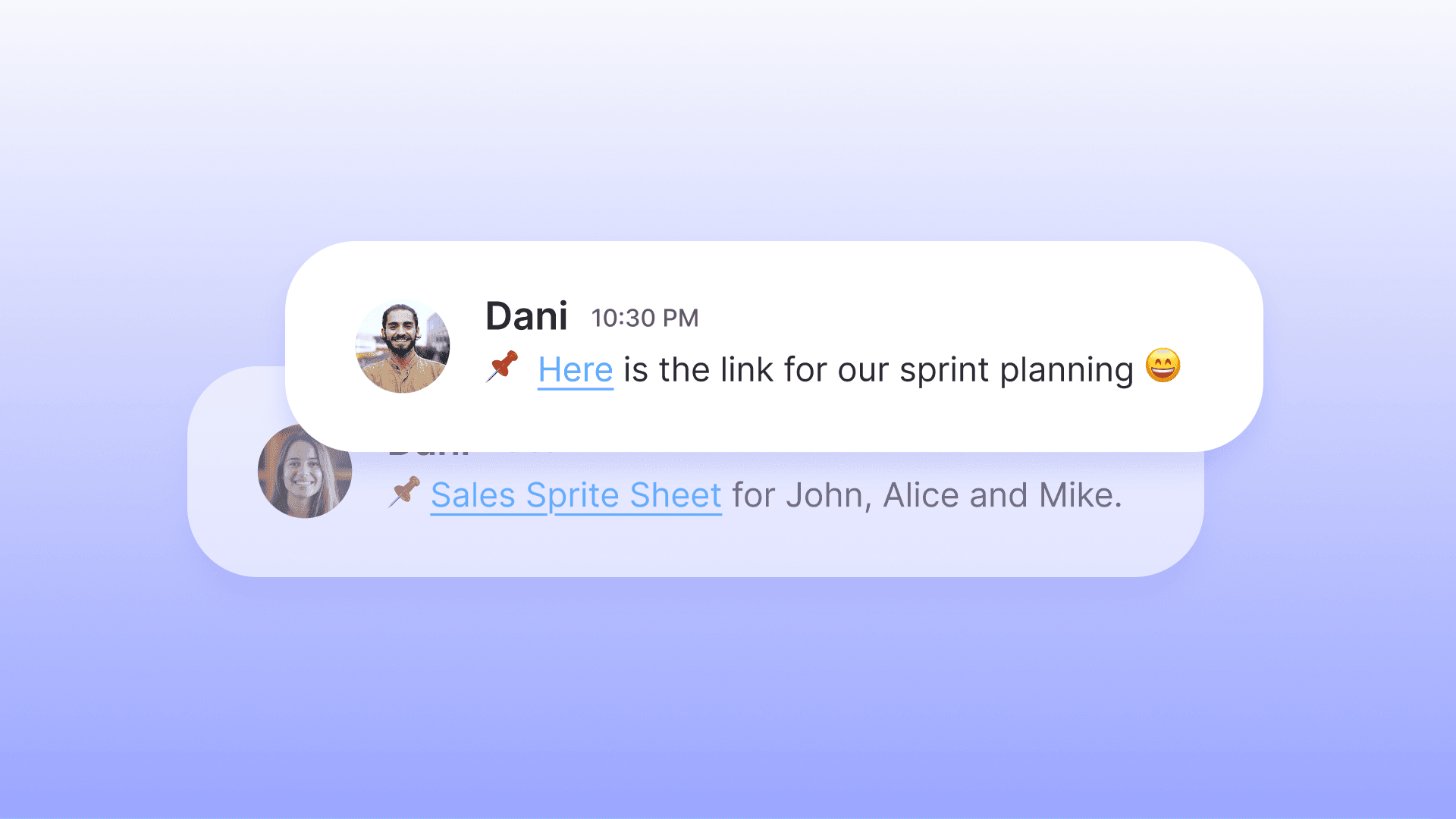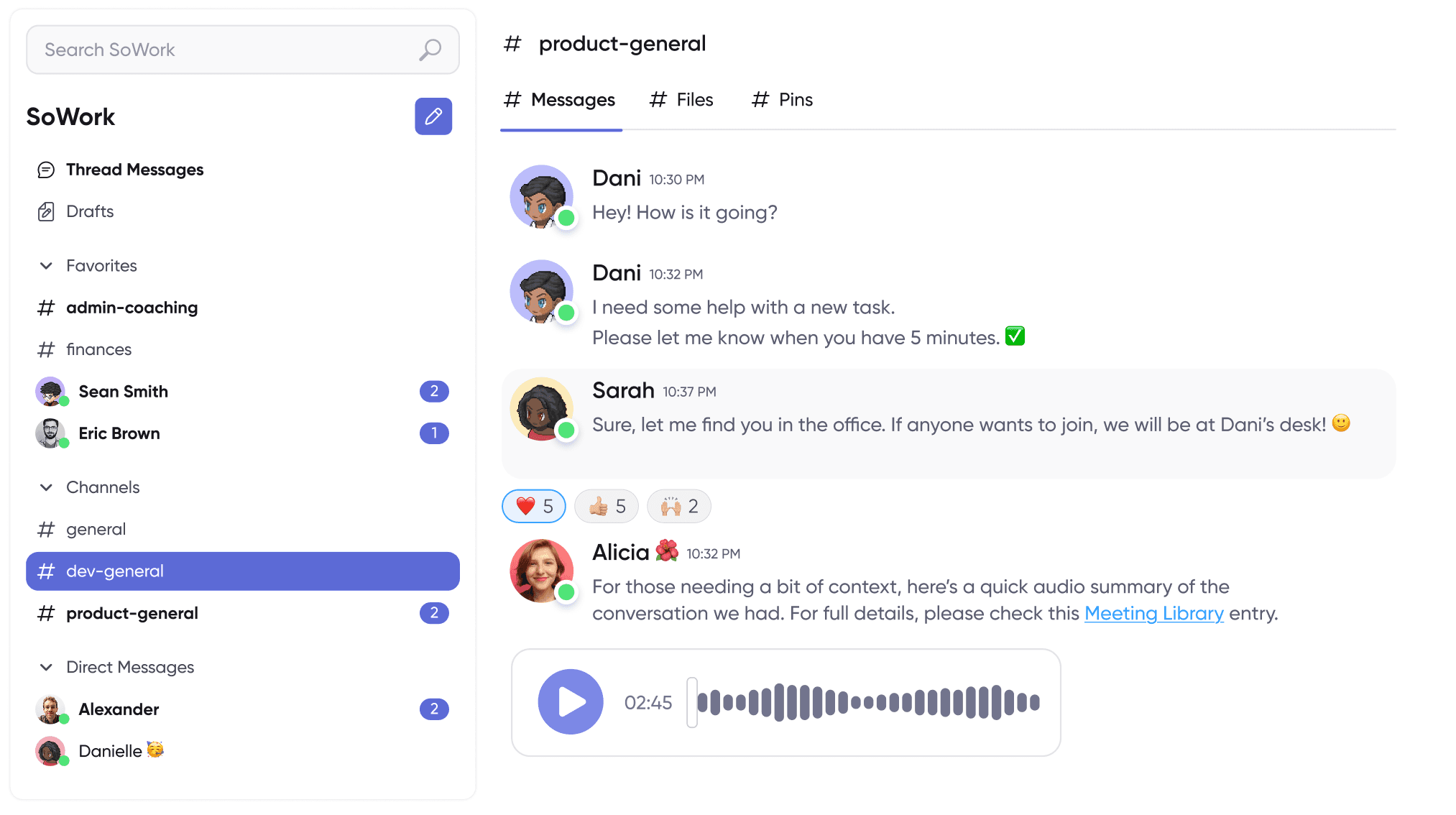 Send quick audio messages when typing isn’t efficient. Perfect for async updates, explanations, or context-rich feedback.