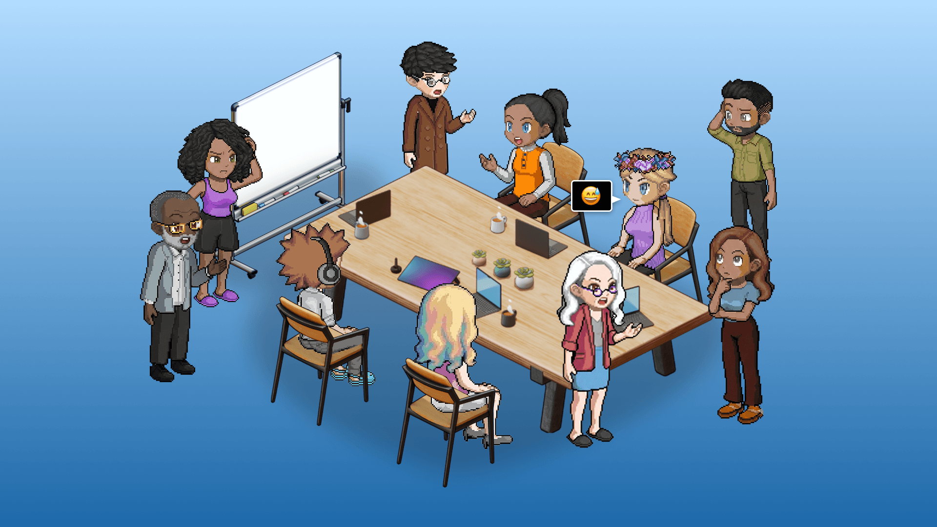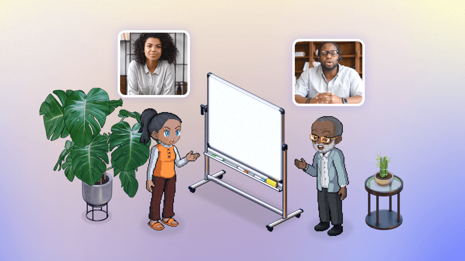 Work side by side without the friction. Review designs, annotate screens, and unblock decisions in real time, all in the same virtual office where the work actually happens.