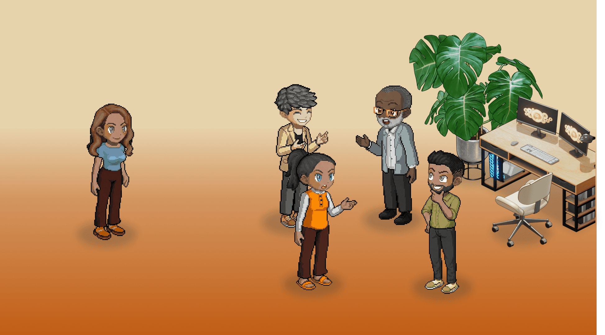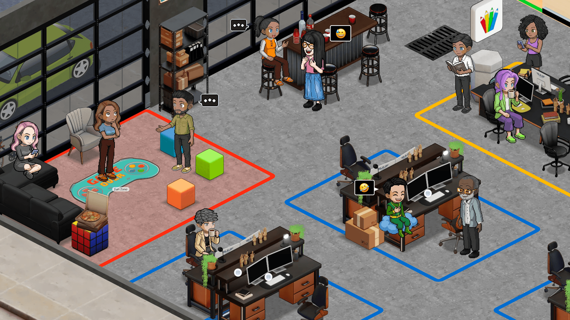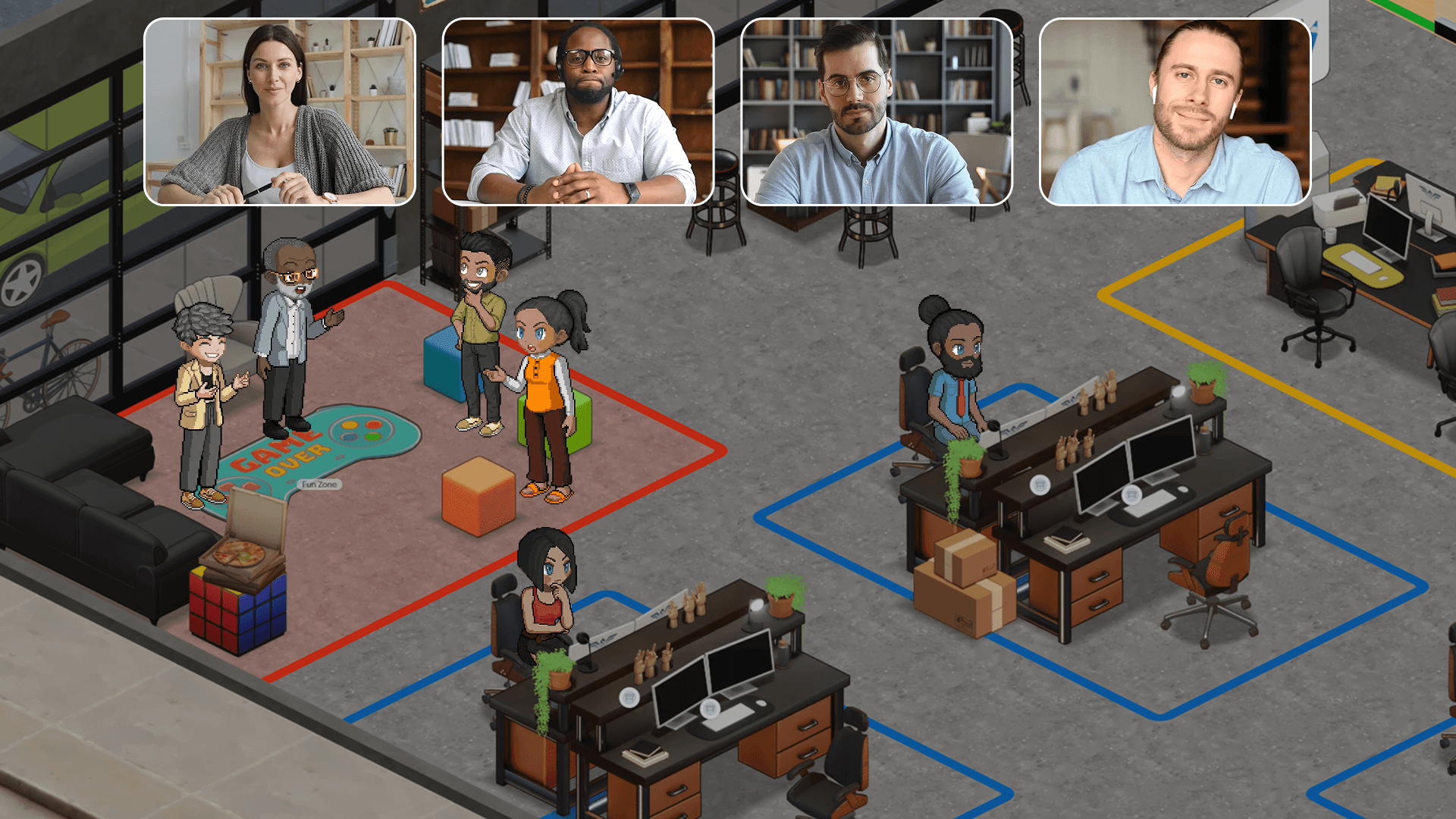Mimic the energy of a garage startup by walking up to a teammate for a quick sync. Eliminate meetings about meetings by solving problems in real-time as you move around your virtual office.